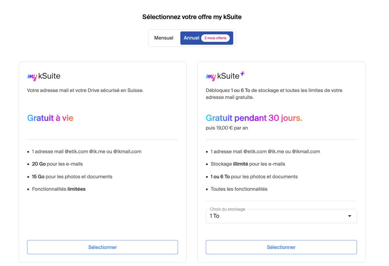 Comme nouveau fournisseur d’email, j’ai proposé Infomaniak que j’utilise depuis longtemps pour mon cloud. Ses avantages :
